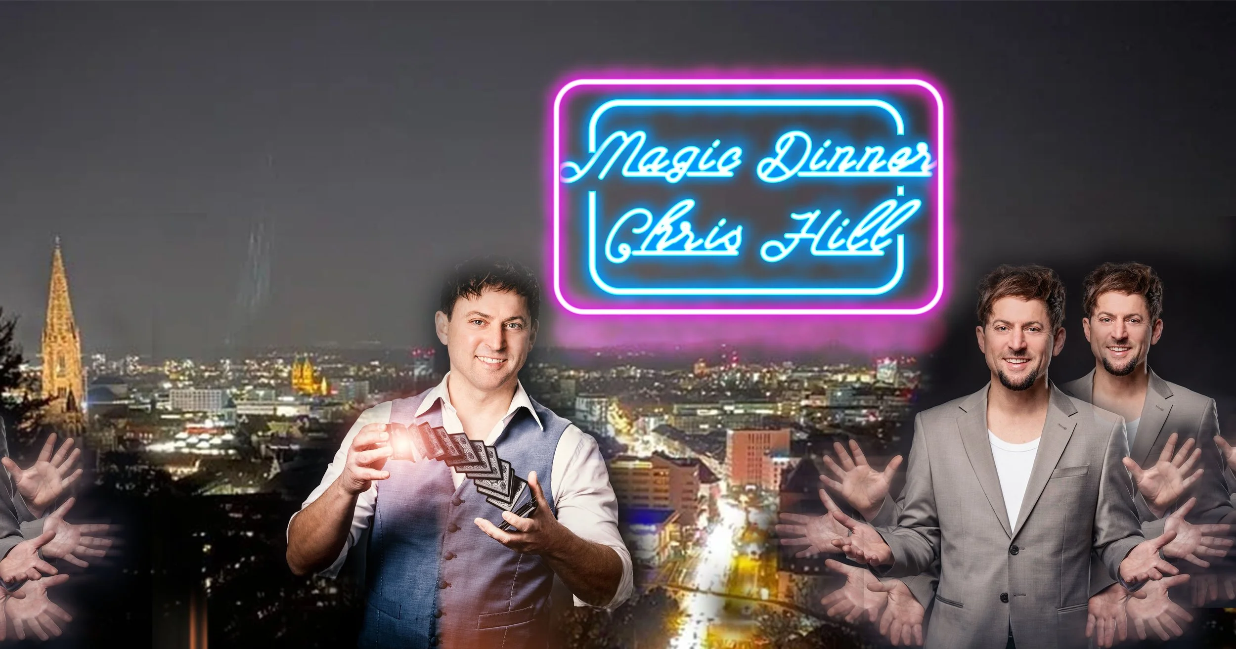 Mit feinem Gespür für Atmosphäre bewegt sich Chris Hill von Tisch zu Tisch und überrascht Ihre Gesellschaft mit stilvoller, moderner Close-up-Magie – direkt vor Ihren Augen, greifbar nah und dennoch unerklärlich. Später lädt er Sie zu einer Bühne voller Illusionen ein, wo seine charismatische Präsenz und sein präzises Handwerk für unvergessliche Wow-Momente sorgen.